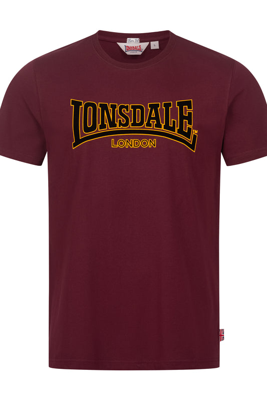 LONSDALE LONDON T-Shirt mit klassischem Flockdruck auf der Brust/Front (weinrot - oxblood)