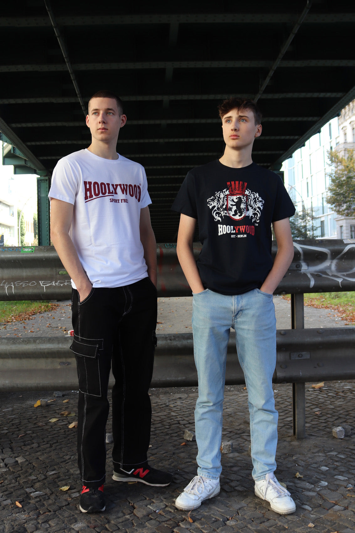 The classic HOOLYWOOD – SPORT FREI t-shirt with a large HOOLYWOOD – SPORT FREI print on print on the chest.