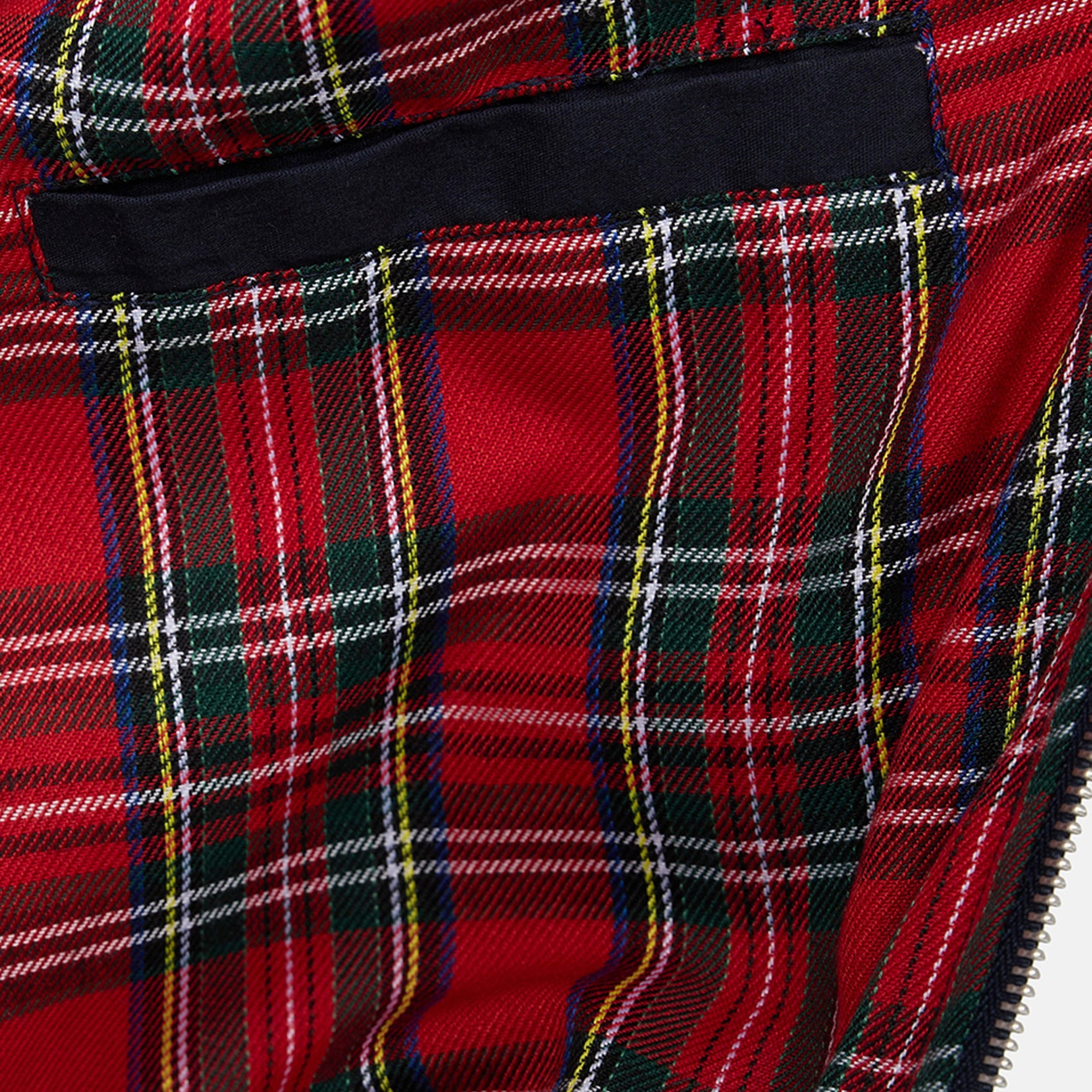 - Zip closure with logo embroidery on the left chest. The front features two flap pockets with buttons. The checked lining is a contrasting color.